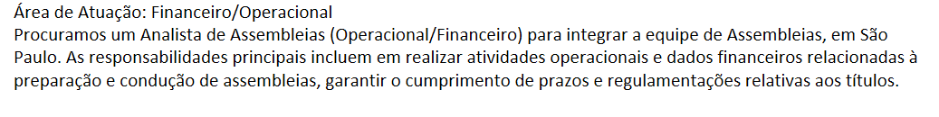 Analista Assembleias Jr. (Financeiro/Operacional)